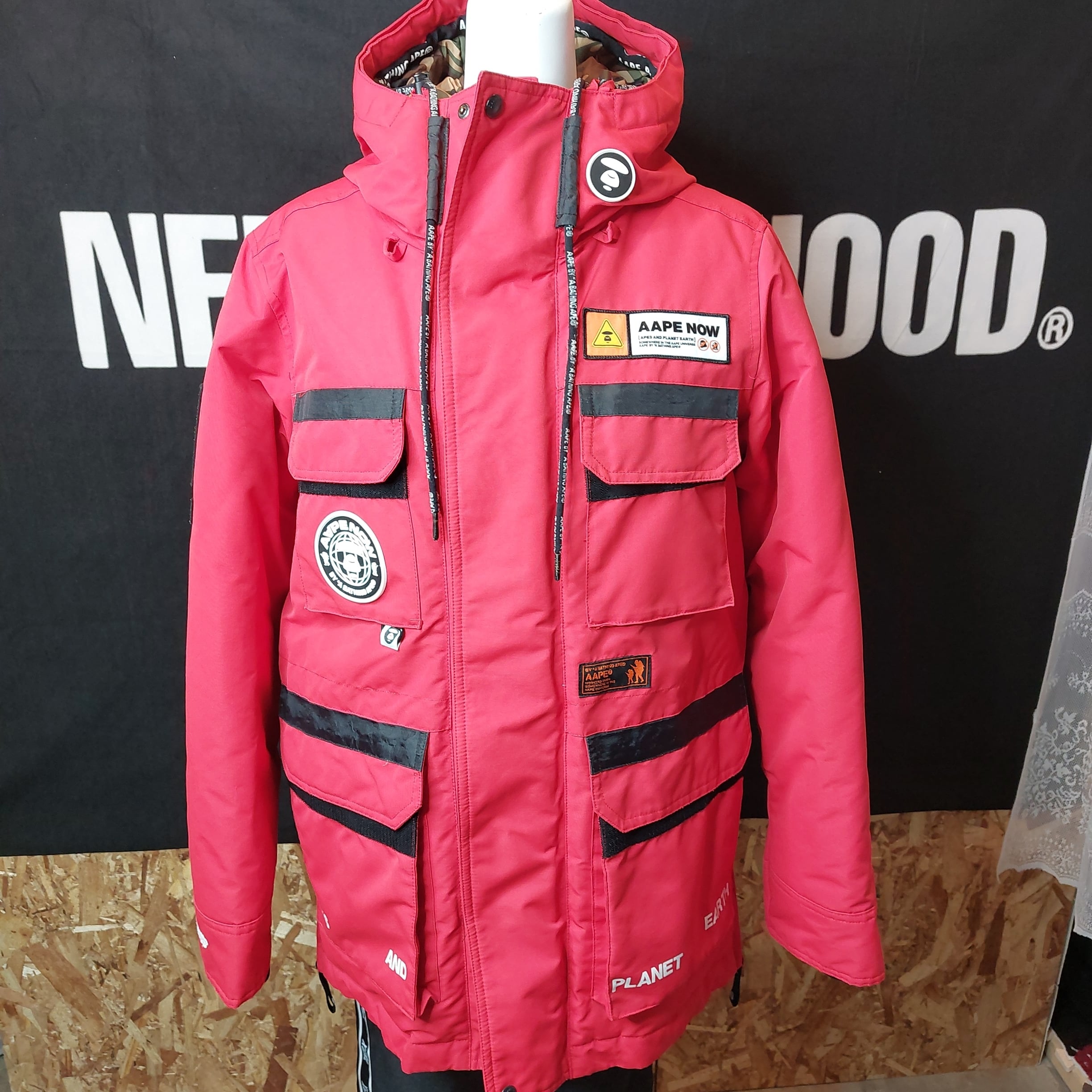 AAPE BY A BATHING APE 赤ダウンジャケット 複数ポケット付き ランクA
