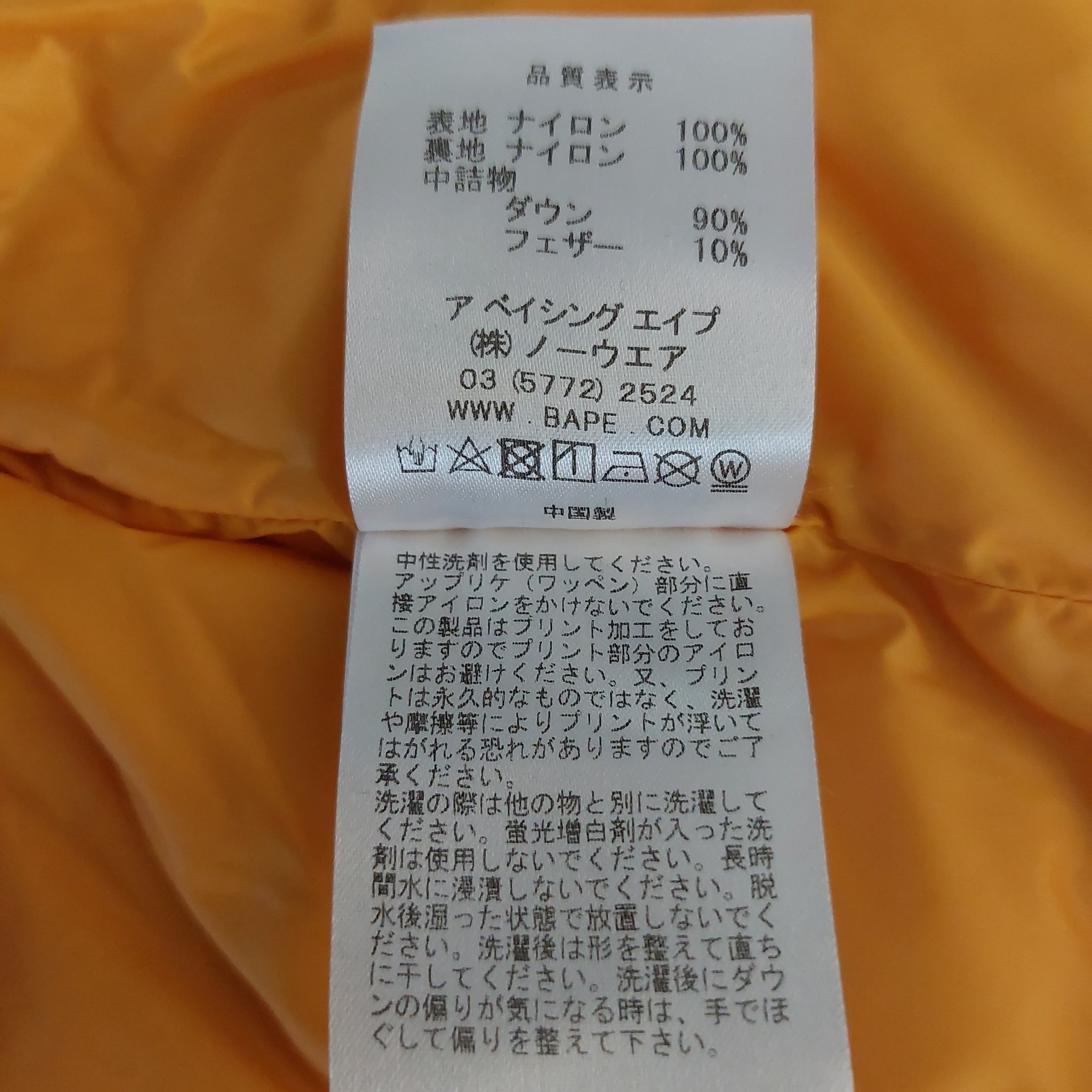 BAPE KIDS イエロー ダウンベスト 110