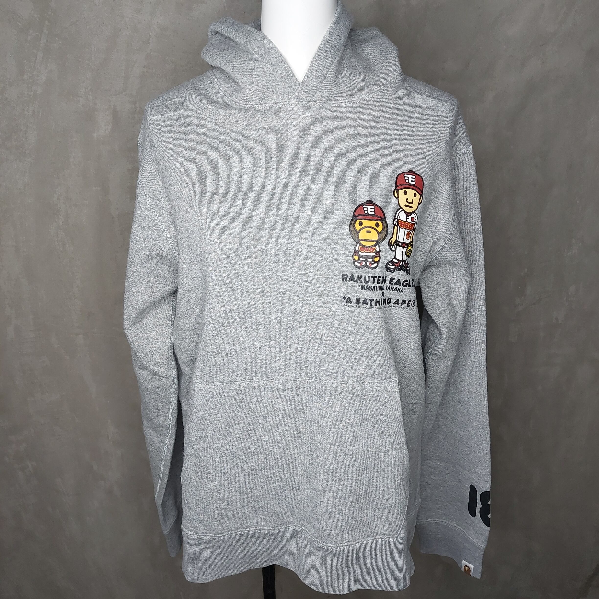 A BATHING APE×楽天イーグルスとのキャラクターがプリントされたグレーパーカー