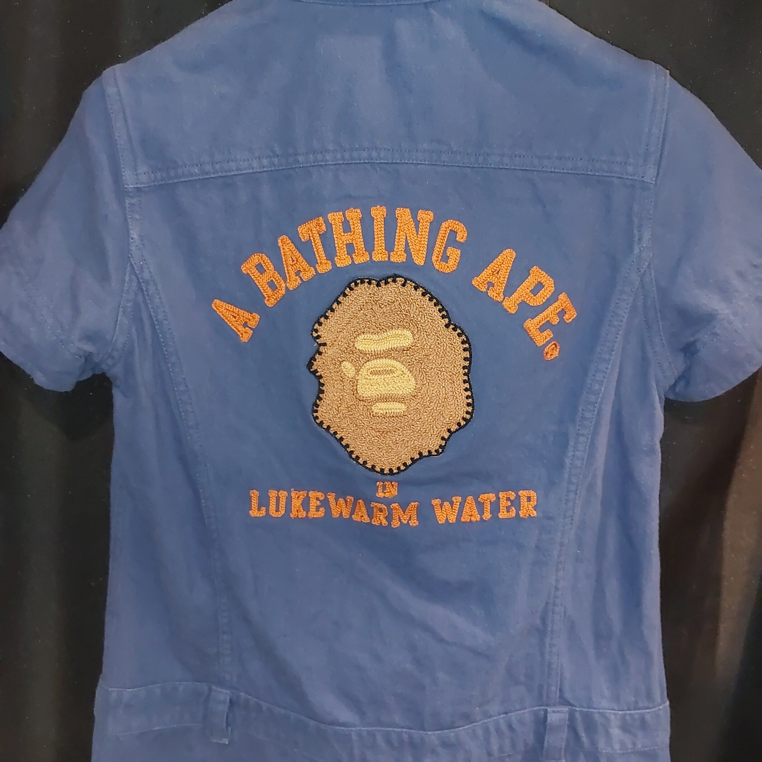 A BATHING APE ブルー シャツワンピは、ストリートスタイルを一層引き立てるアイテムです!鮮やかなブルーが印象的で、どんなシーンにも適応可能なファッション性があります。気軽に着られるデザインは、カジュアルな日常使いからお出かけまで幅広く活躍します。さらりとした生地感は、快適な着心地を提供し、長時間の使用でもストレスフリーです。